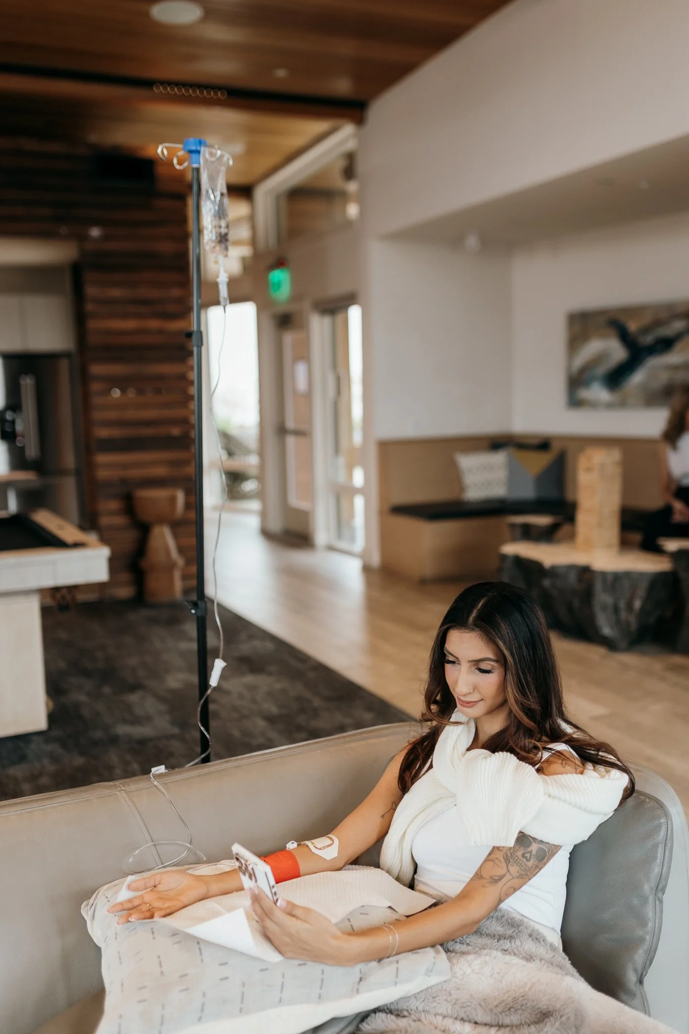 We’ll review your health history and answer any questions before gently placing the IV. The experience is similar to a blood draw, but with a small, soft catheter and minimal discomfort. You can relax during the infusion—read, rest, or simply unwind.